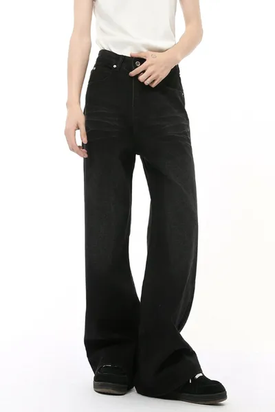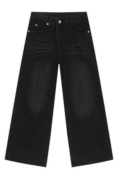 Washed Cat Whisker Straight Leg Jeans