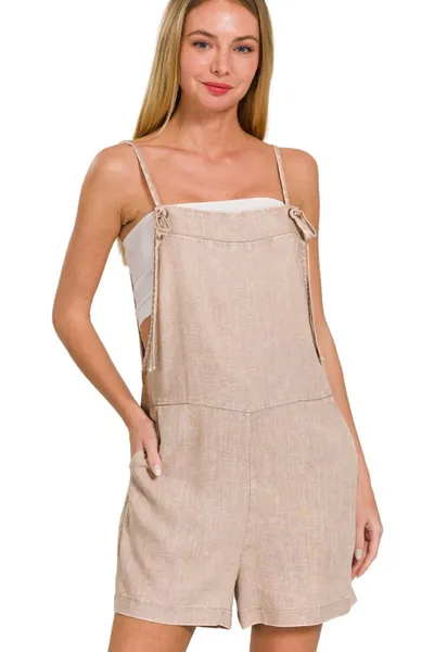 Washed Linen Knot Strap Rompers