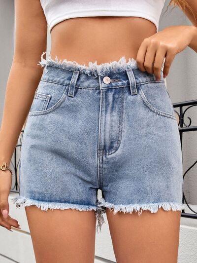 Washed Raw Hem Denim Shorts