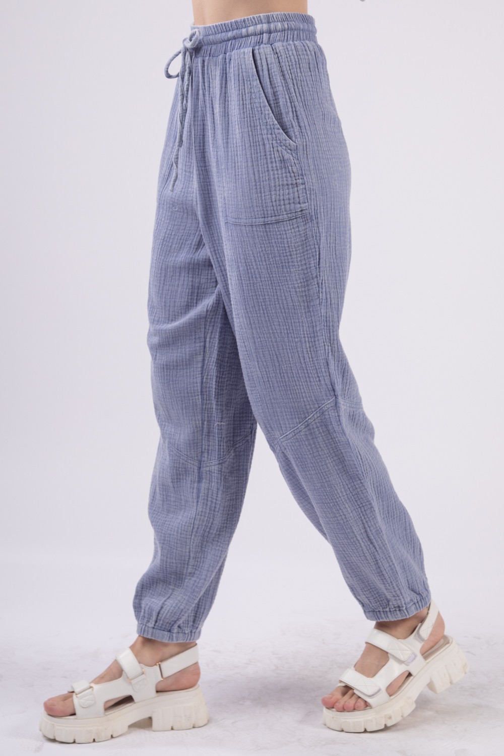 Washed Woven Crinkle Gauze Drawstring Cargo Pants