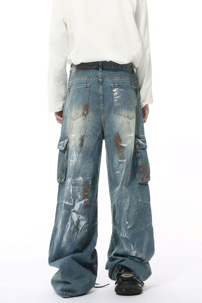 Waste Soil Style Jeans with Cargo Pockets