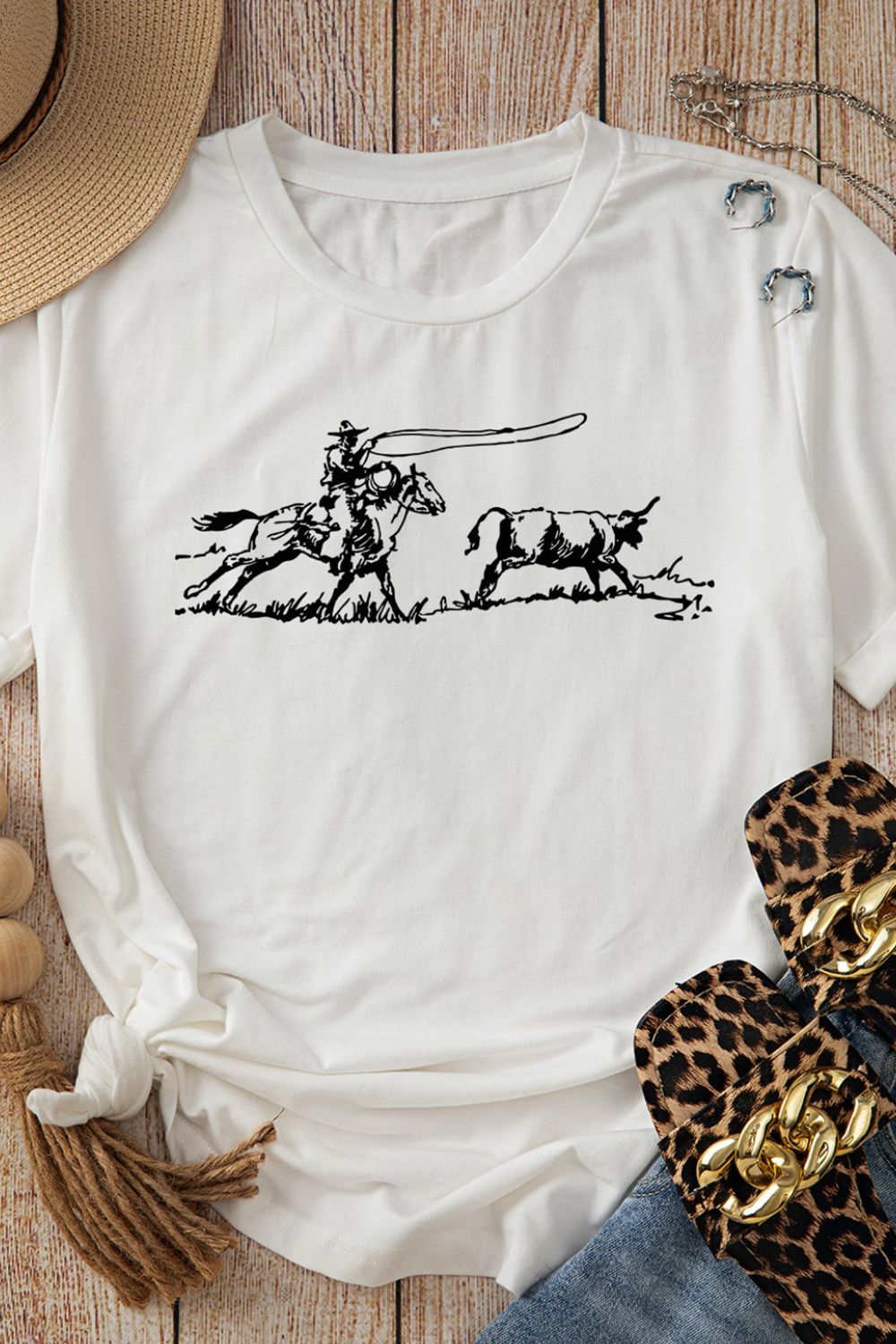 Western Rodeo Graphic Round Neck T Shirt