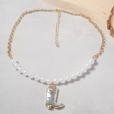 Western Style Pearl Boot Pendant Necklace