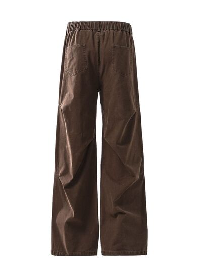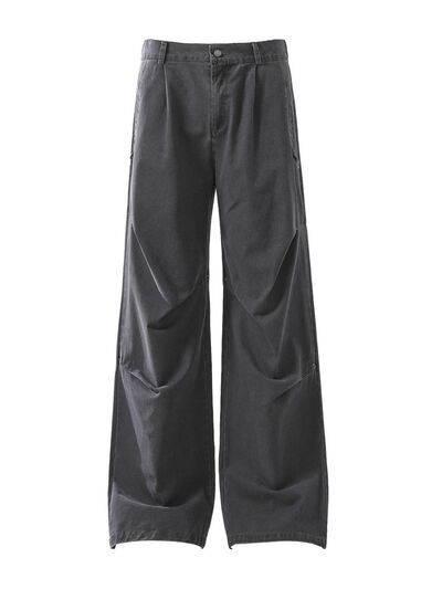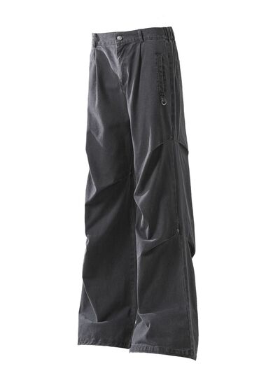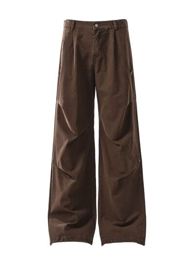 Wide-Leg Cargo Pants with Unique Curved Seam Design