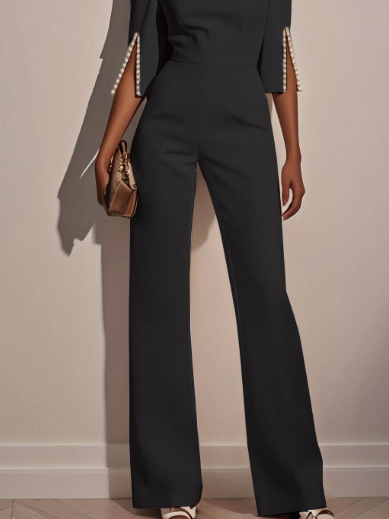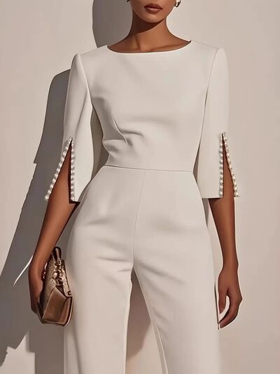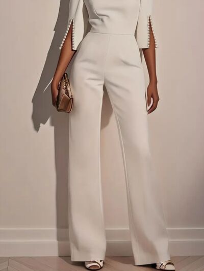 Wide-Leg Jumpsuit with Slit Sleeve