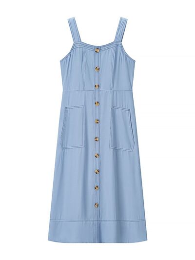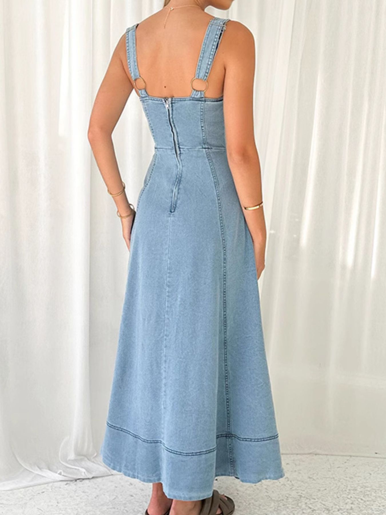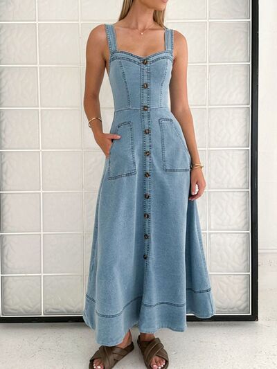 Wide Strap Sweetheart Neck Denim Dress