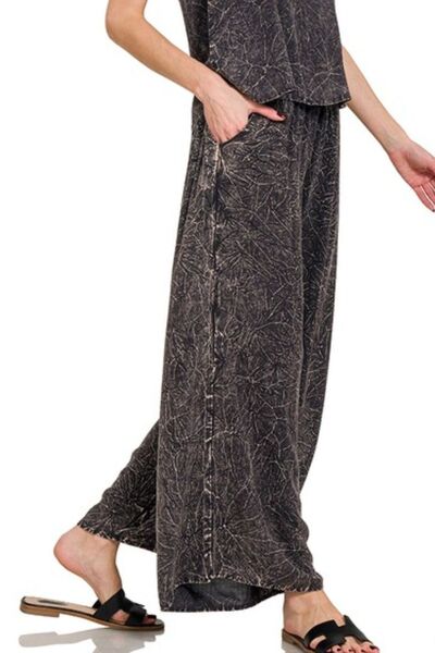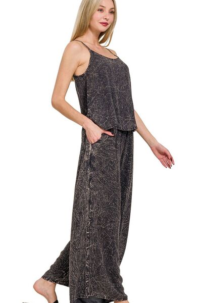 Woven Acid Crinkle Washed Cami & Pants 2 Piece Set
