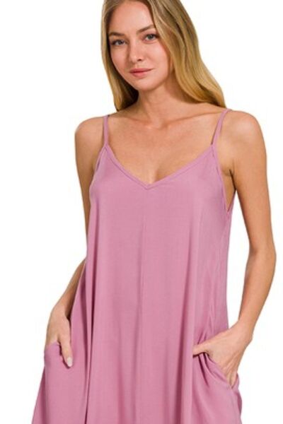 Woven Arc Hem Cami Dress With Flowy Pockets