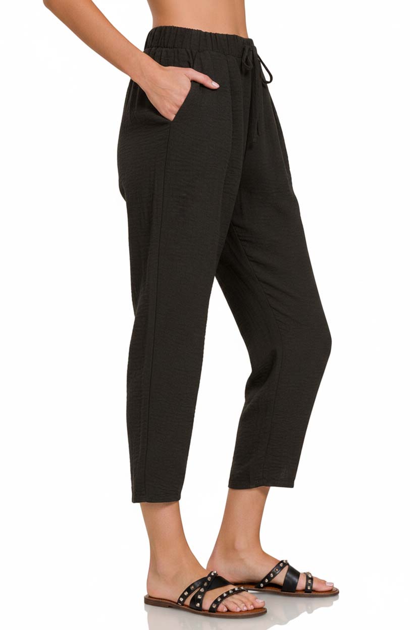 Woven Crepe Elastic Band Waist Pants