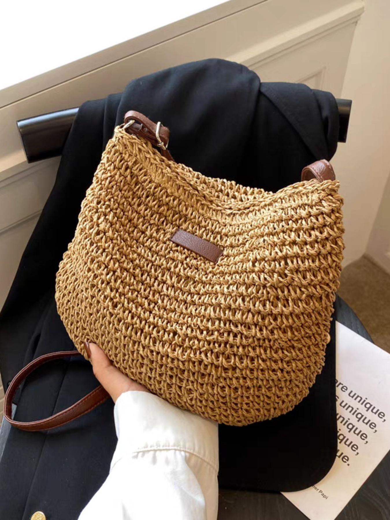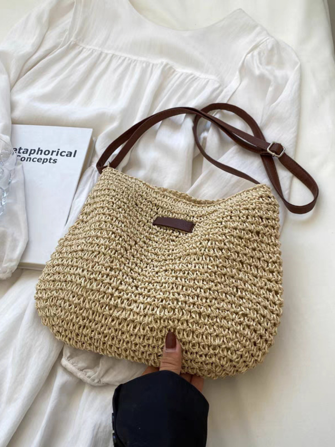 Woven Straw Adjustable Strap Crossbody Bag