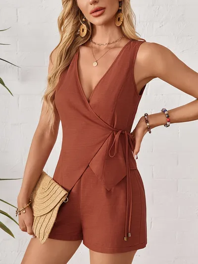 Wrap Tie Front Sleeveless Top and Shorts Set