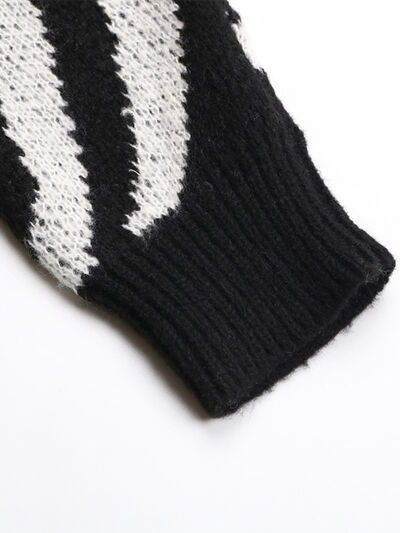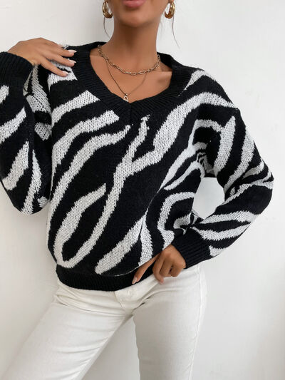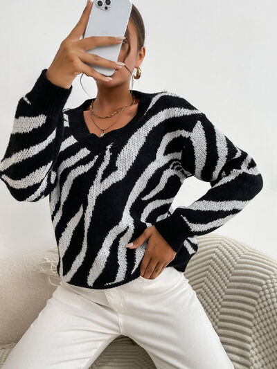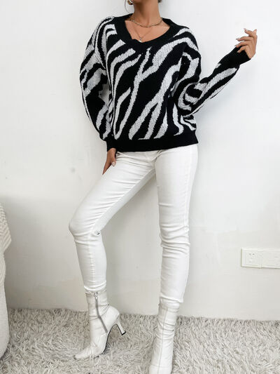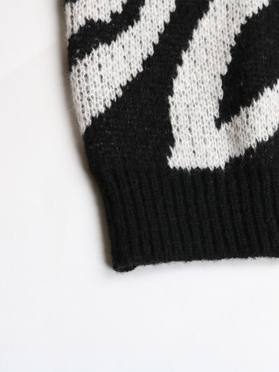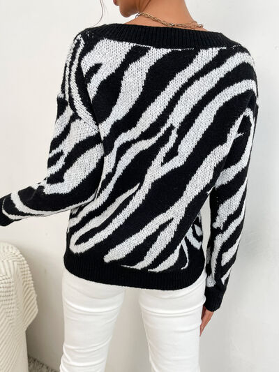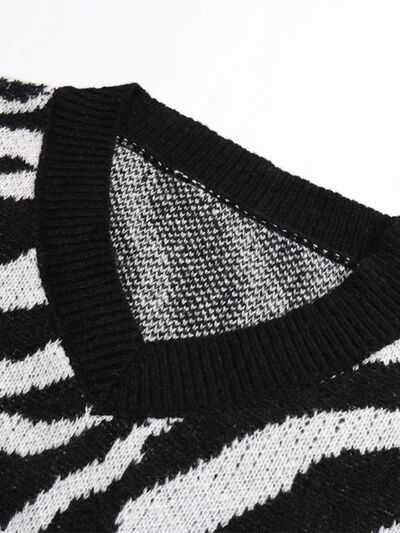 Zebra Print Relaxed Fit Pullover Sweater