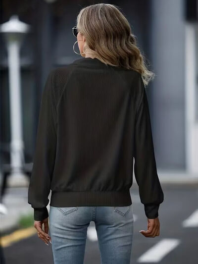 Zip Up Collared Neck Raglan Sleeve Jacket