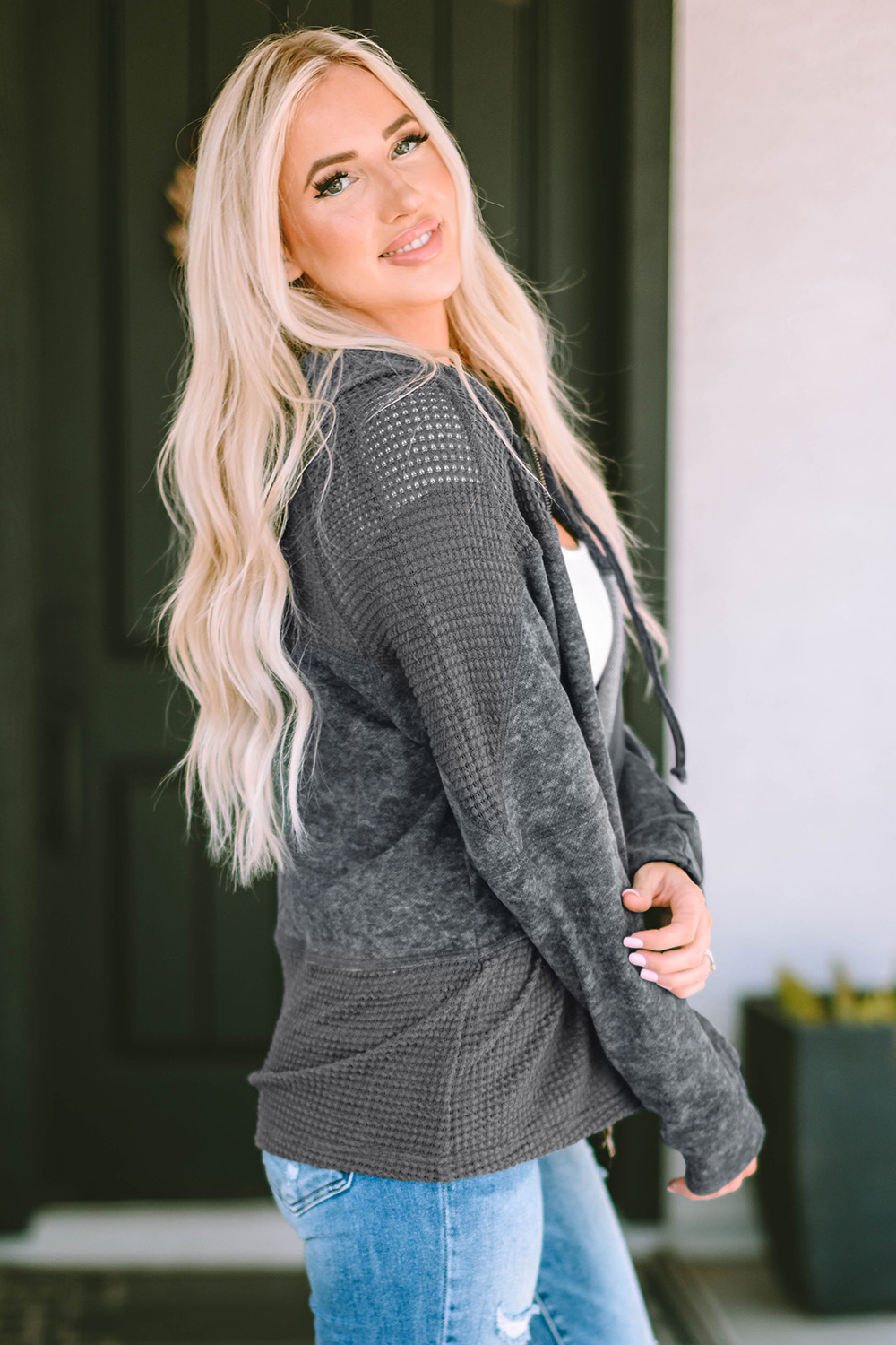 Zip-Up Drawstring Hooded Jacket
