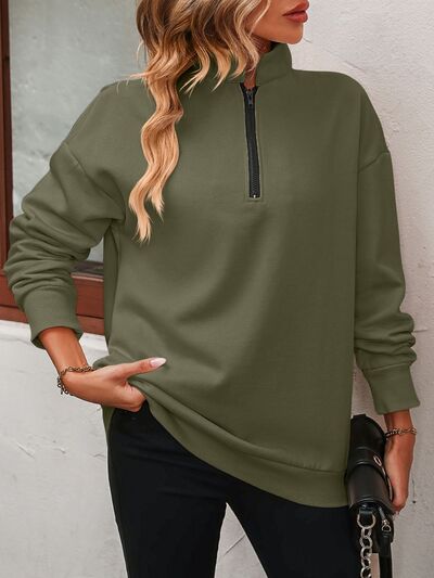 Zip-Up Dropped Shoulder Sweatshirt