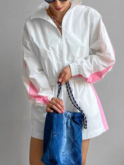 Zip Up Long Sleeve Jacket and Shorts Set