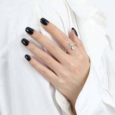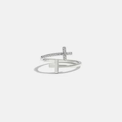 Zircon 925 Sterling Silver Double Cross Bypass Ring