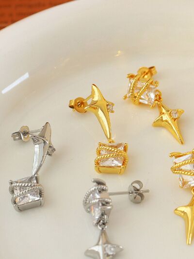 Zircon Copper Geometric Drop Earrings